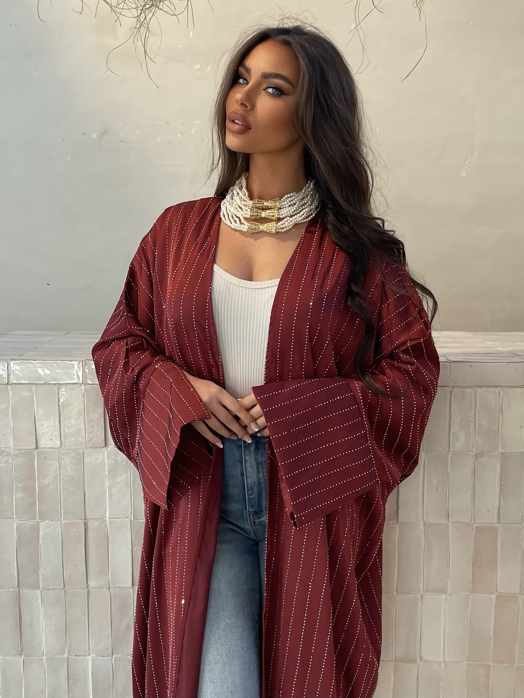 Kimono strass Bordeau